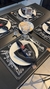 Conteúdo: 04 (quatro) palitos de inox decorados e 01 (um) suporte de acrílico.