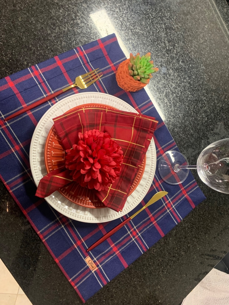 Conteúdo: 01 (um) lugar americano na cor azul com listras vermelhas. Dimensões: 45cm x 35cm. O Jogo Americano Azul e Vermelho é lugar americano feito em tecido jacquard fio tinto. O fio tinto possui gramatura 50% maior que o jacquard tradicional, proporcionando mais robustez e praticidade para todos os momentos. Produzido no Brasil. Você pode usar esse Jogo Americano Azul e Vermelho na mesa do seu almoço, café da tarde e/ou no jantar. Especificações Técnicas: - Feito em Jacquard Fio Tinto, que possui gramatura 50% maior que o Jacquard Tradicional, trazendo mais robustez. - Toque Macio: o tecido do Jogo Americano Azul e Vermelho conta com uma tecnologia que proporciona tecidos com toque mais macio e confortável, assegurando aconchego aos seus ambientes. - Durabilidade das Cores: o Jogo Americano Azul e Vermelho é resistente a luminosidade presente nos ambientes internos e externos cobertos, mantendo assim, as cores fiéis por muito mais tempo. - Composição do Jogo Americano Azul e Vermelho: 72% Algodão 28% Poliéster Instrução de Lavagem: - Lavagem a mão; - Não alvejar; - Não secar em tambor; - Secagem em varal; - Temperatura máxima da base do ferro á 150º; - Não limpar a seco. Importante: Demais itens como louças, taças, guardanapos e porta guardanapos não acompanham.