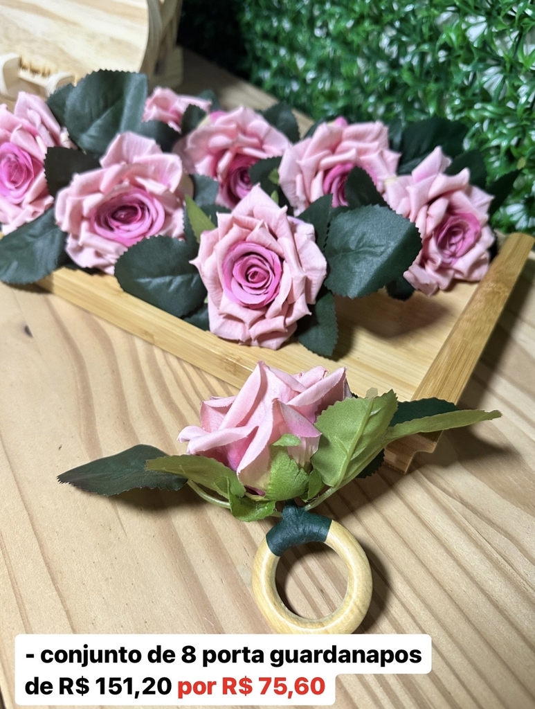 Conteúdo: 01 (uma) argola para guardanapo de rosa, feita a mão. Produzido no Brasil.